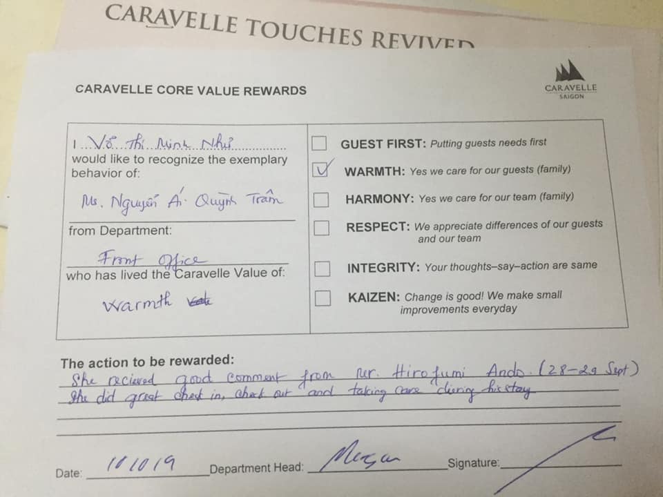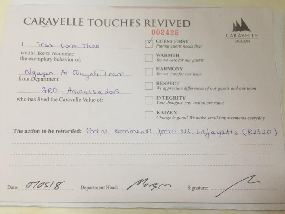 During studying time in Saigontourist Hospitality College, I have gained 2 awards from the "Receptionist Contest" in Final Round
