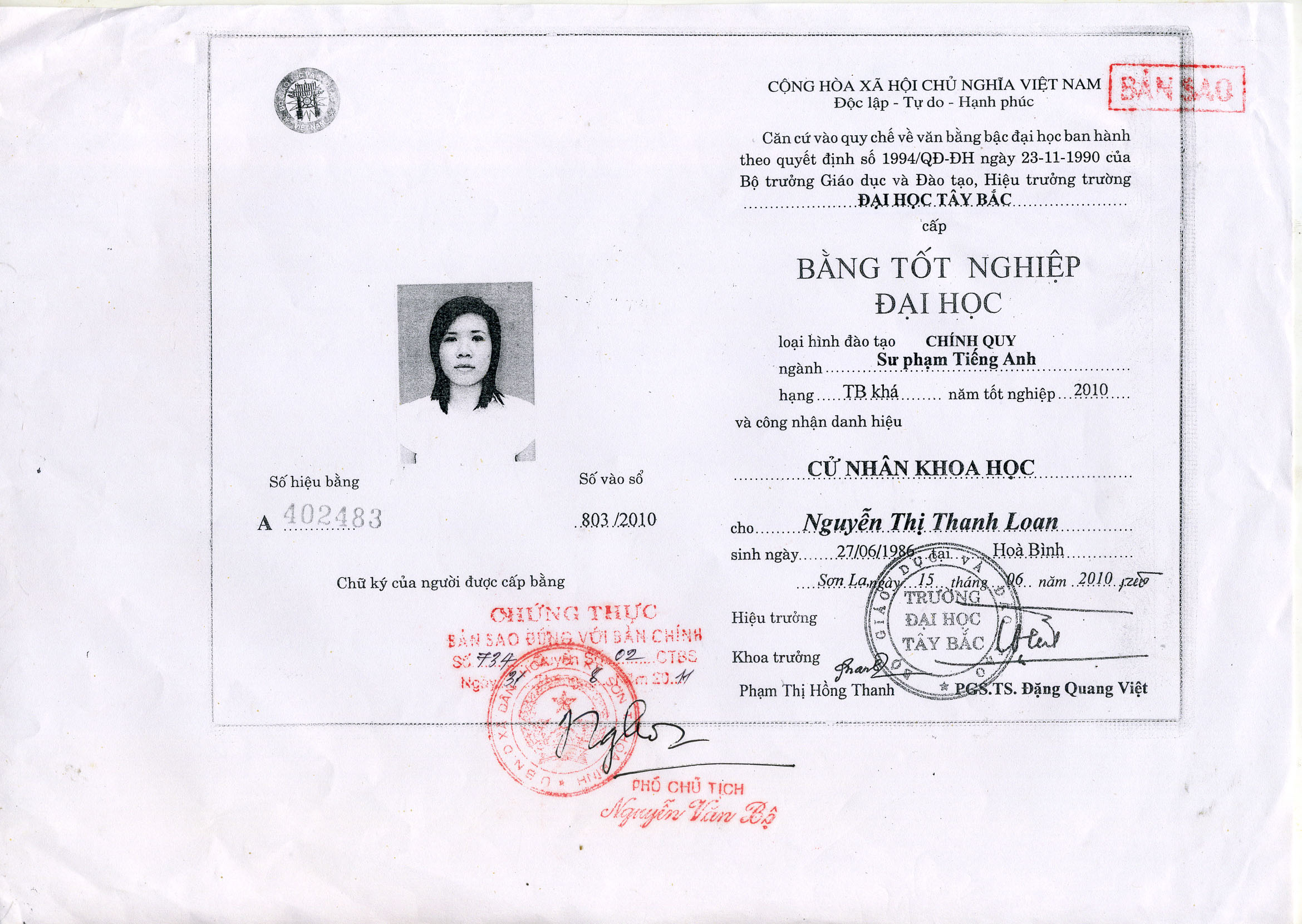 Tiếng Anh (Giỏi), Tiếng Trung (Trung bình)