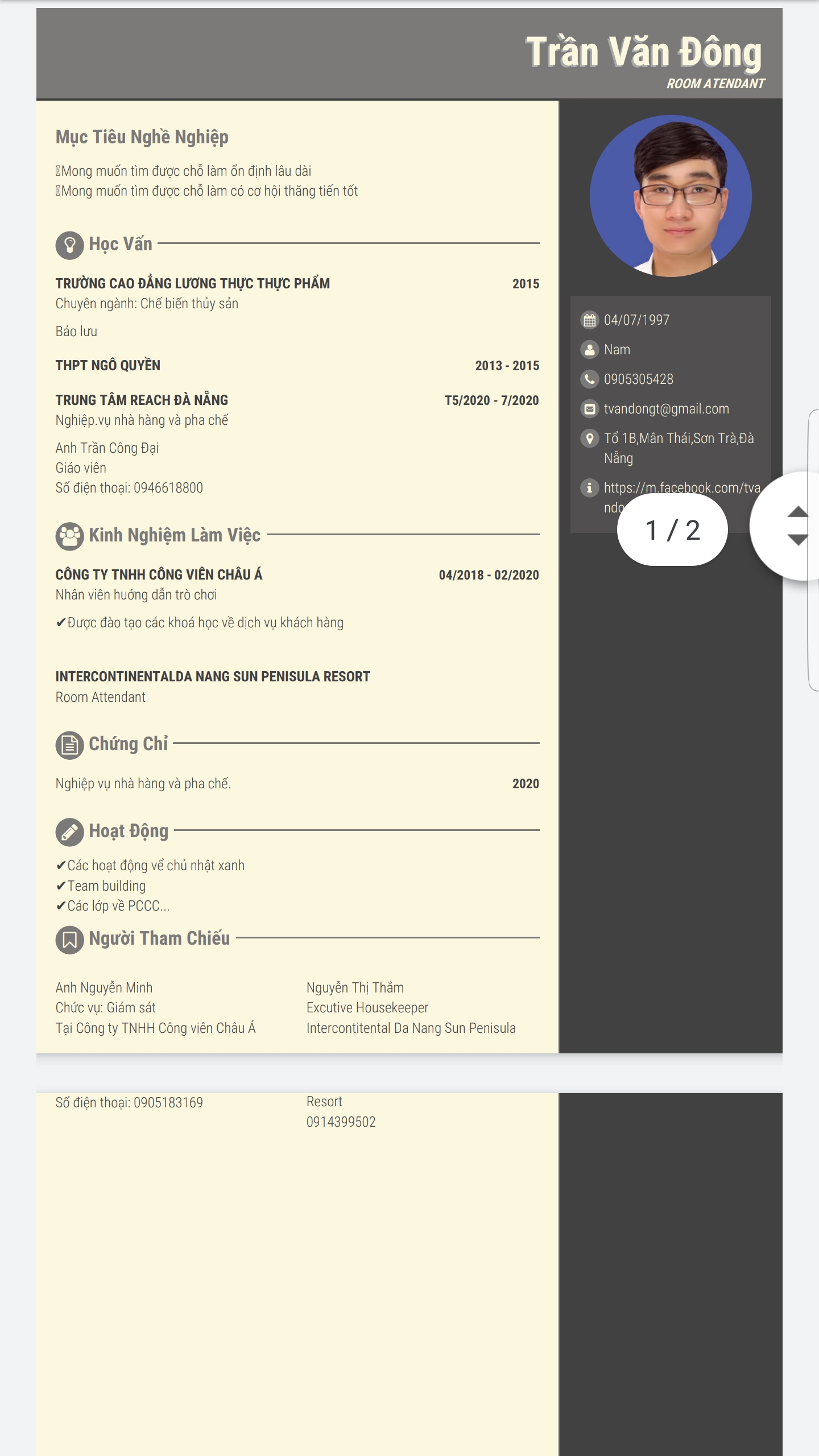 Đã có kinh nghiệm làm buồng phòng tại resort