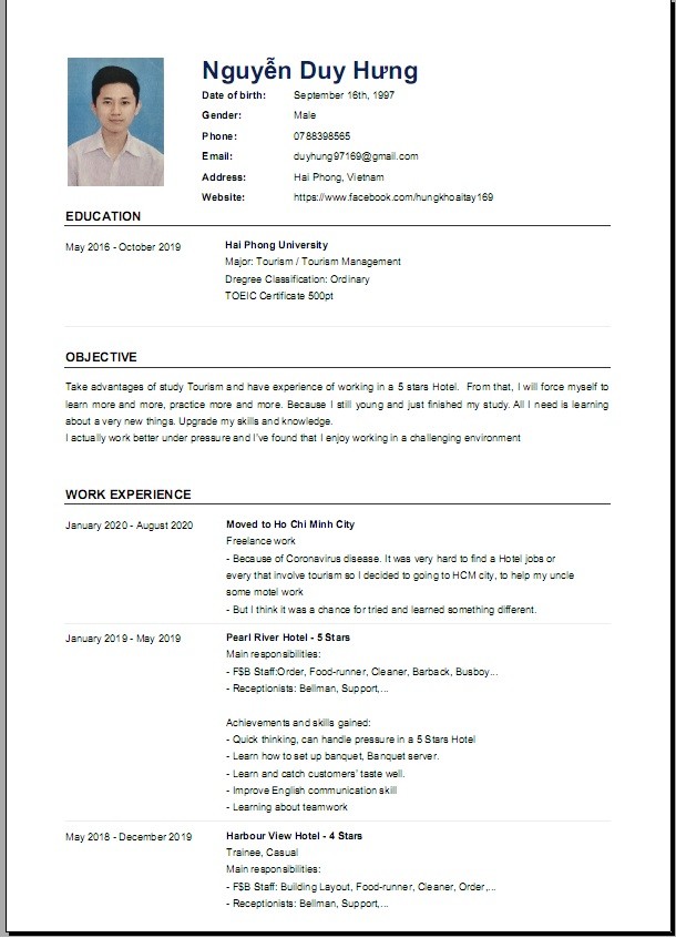 Hồ sơ ứng viên có số điện thoại, email và bao gồm 1 cv đính kèm.
