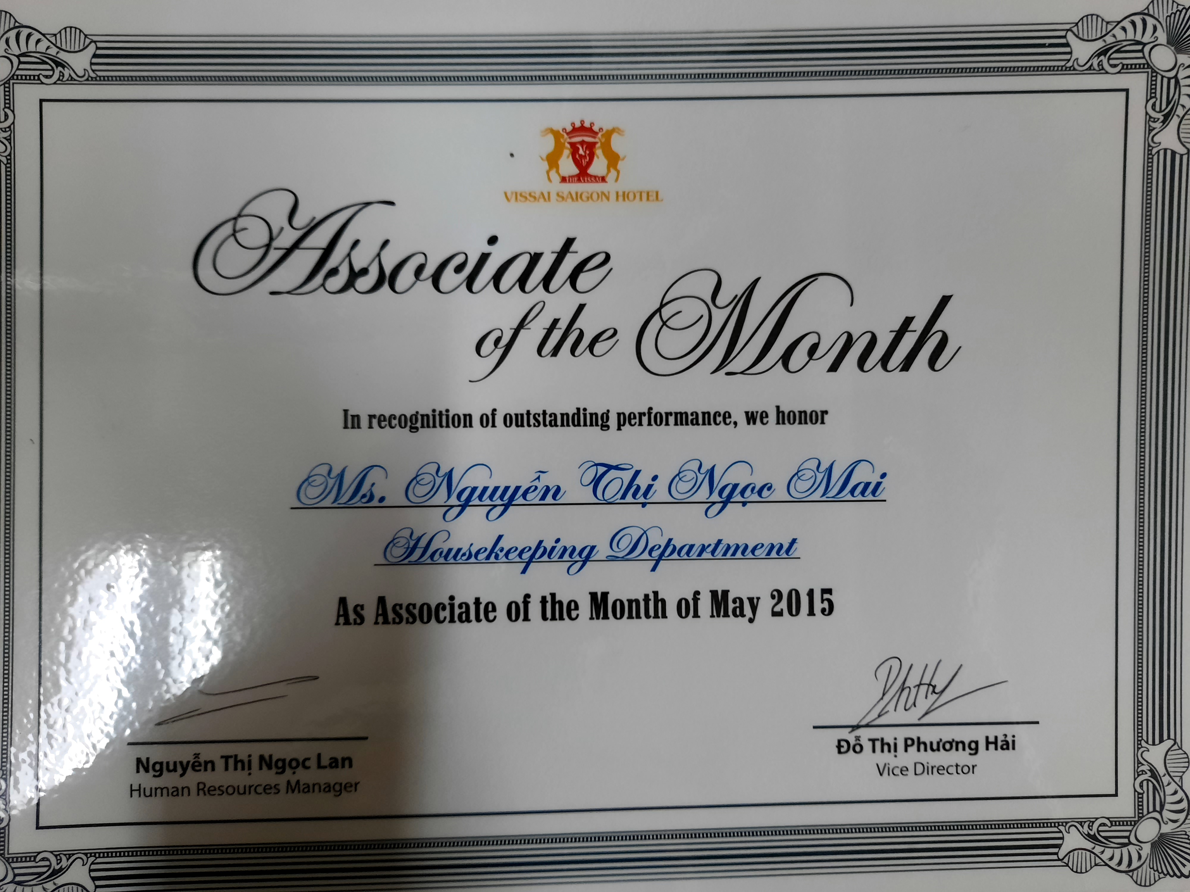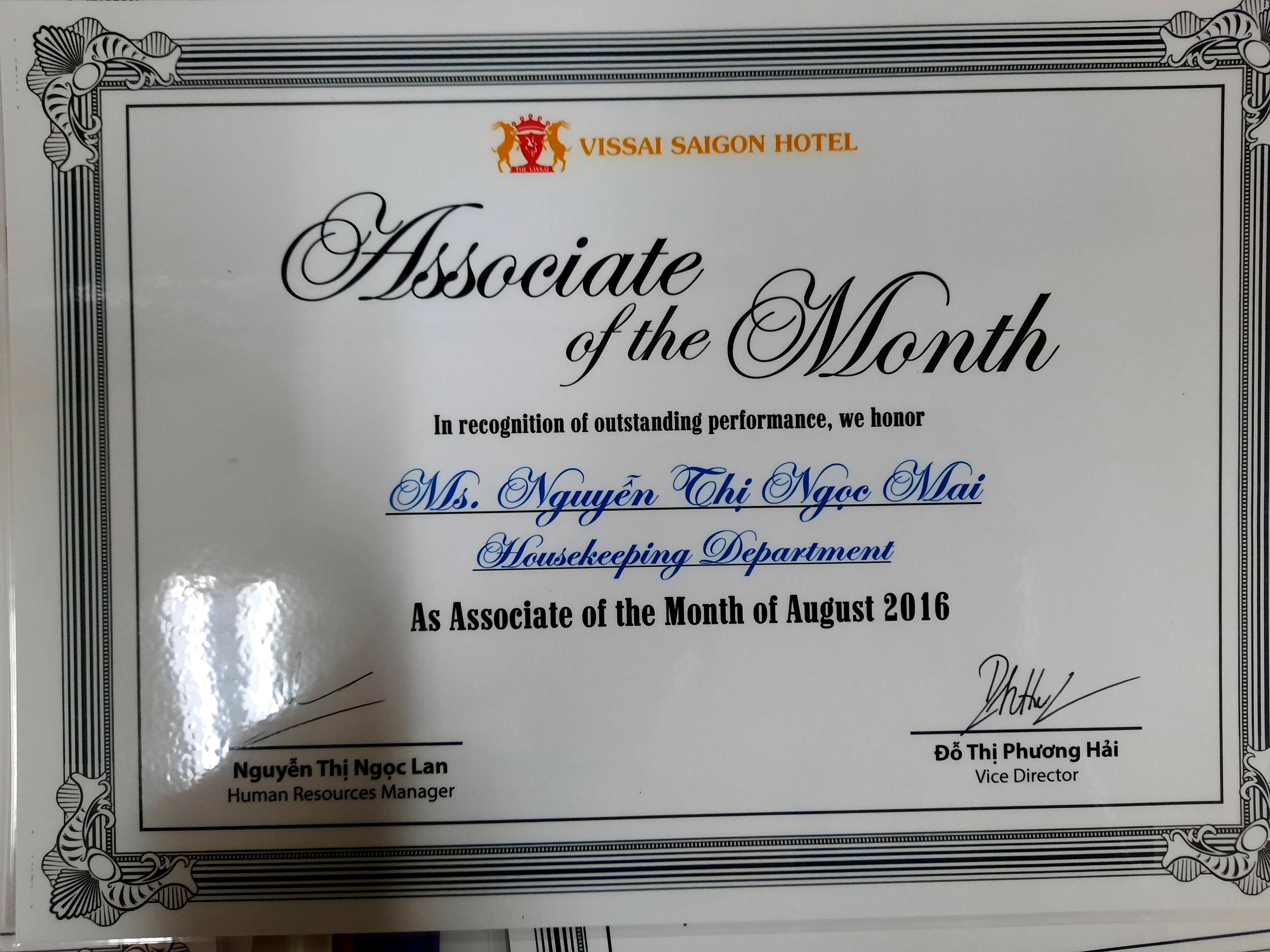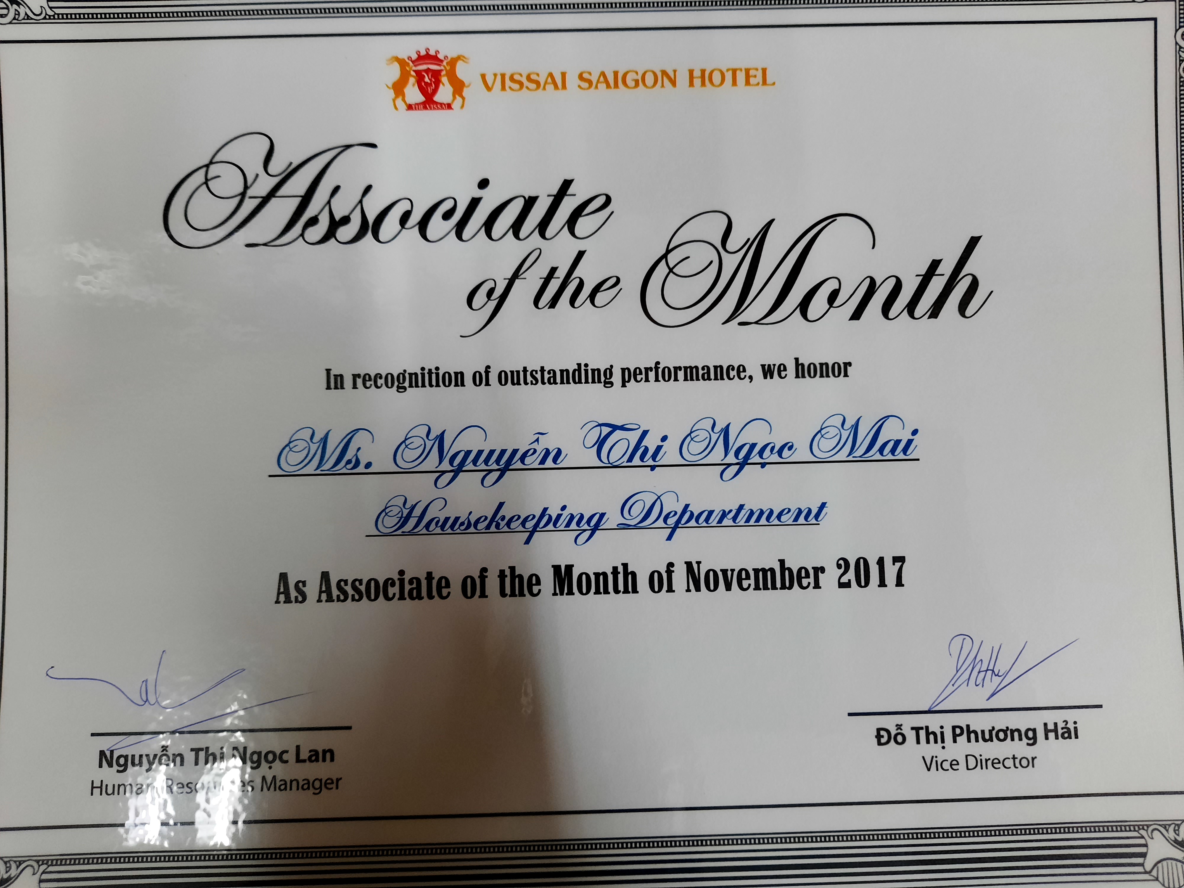 Senoir supervisor tại Vissai Saigon Hotel
