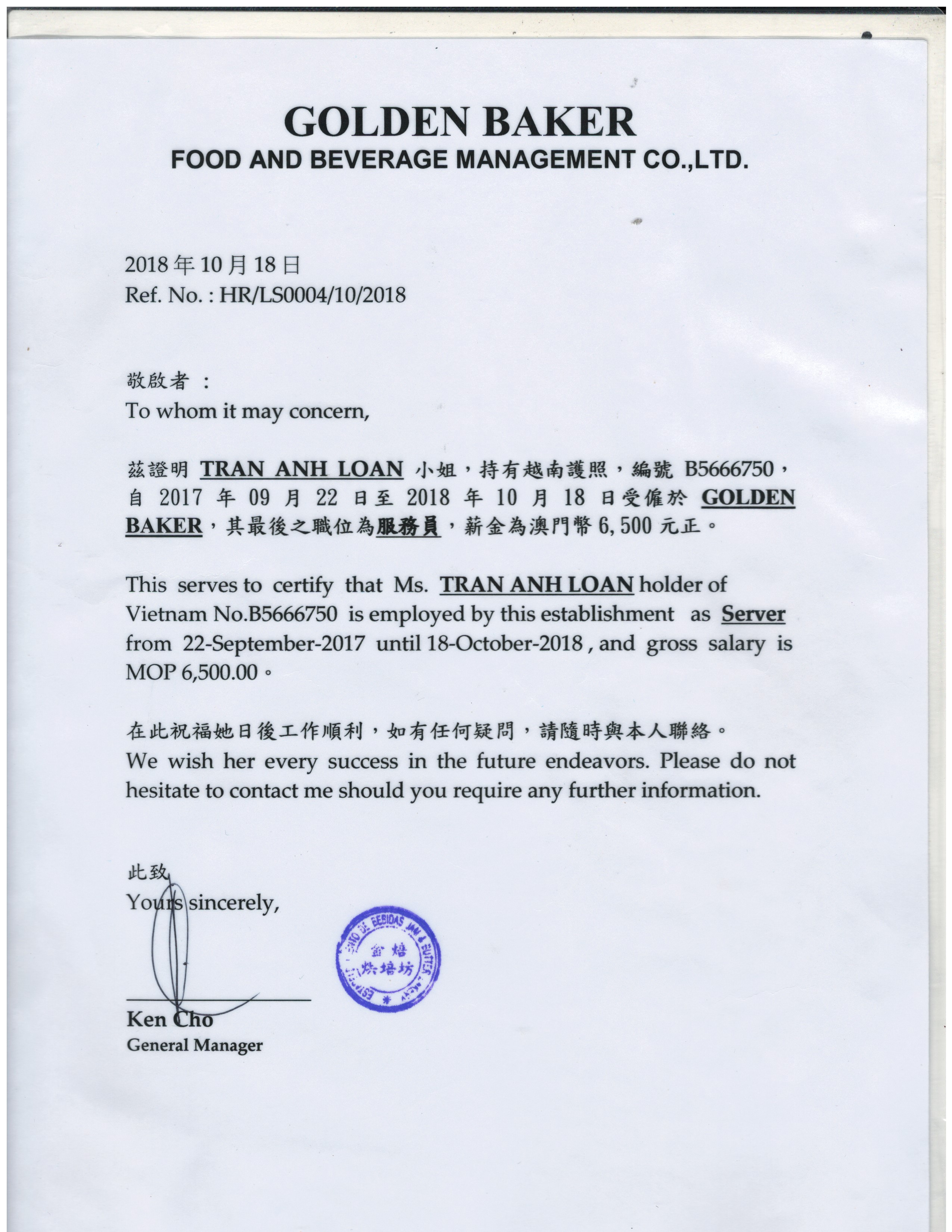 Sumiko Lin - Assistant Restaurant Manager