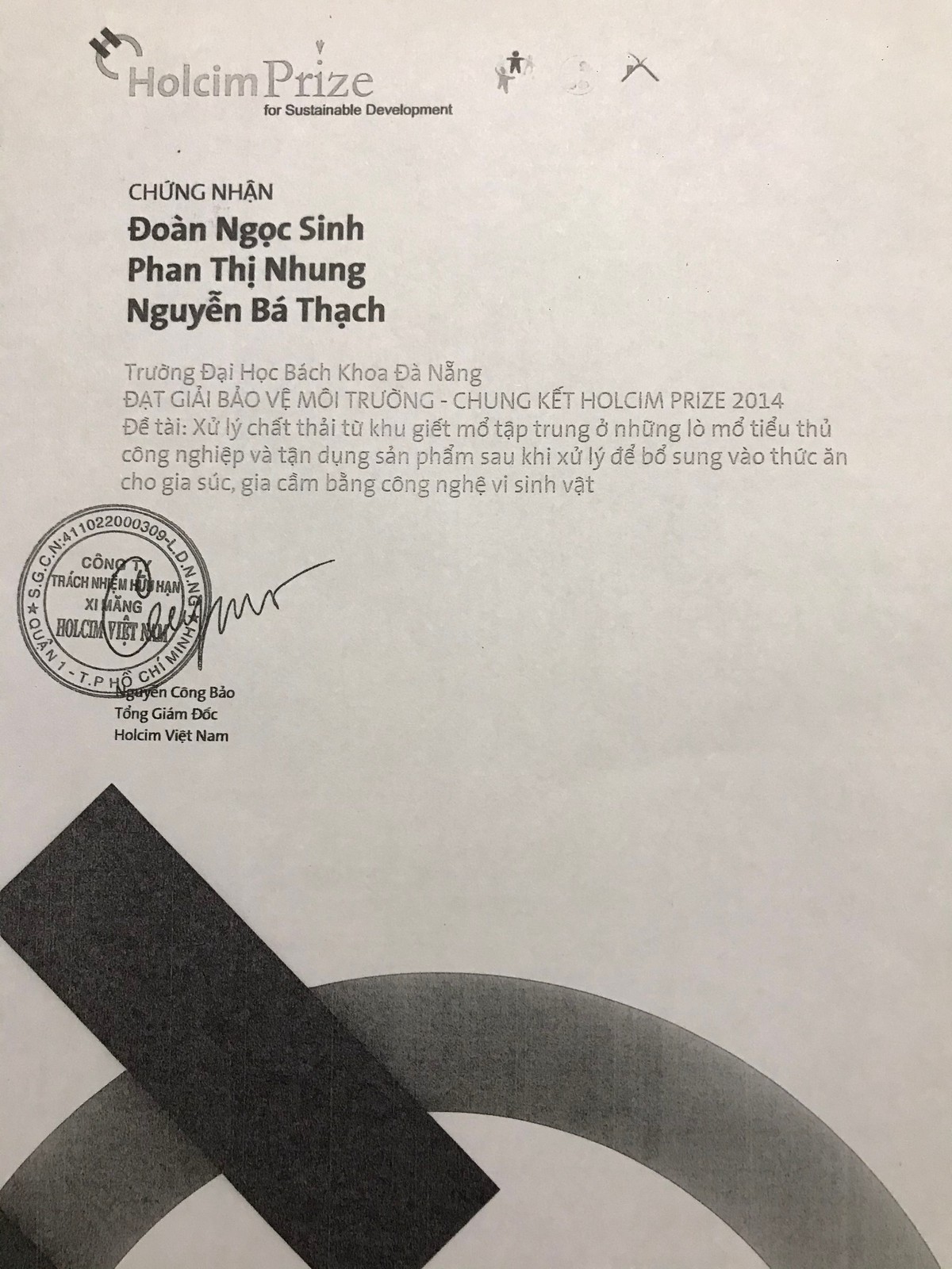 Giải thưởng “Holcim Prize” nhằm khuyến khích và tôn vinh những sáng kiến ứng dụng xuất sắc nhất hướng tới phát triển bền vững, thông qua cuộc thi Nghiên Cứu & Ứng dụng về các chủ đề Phát triển Cộng đồng, Bảo vệ Môi trường và Xây dựng Bền vững