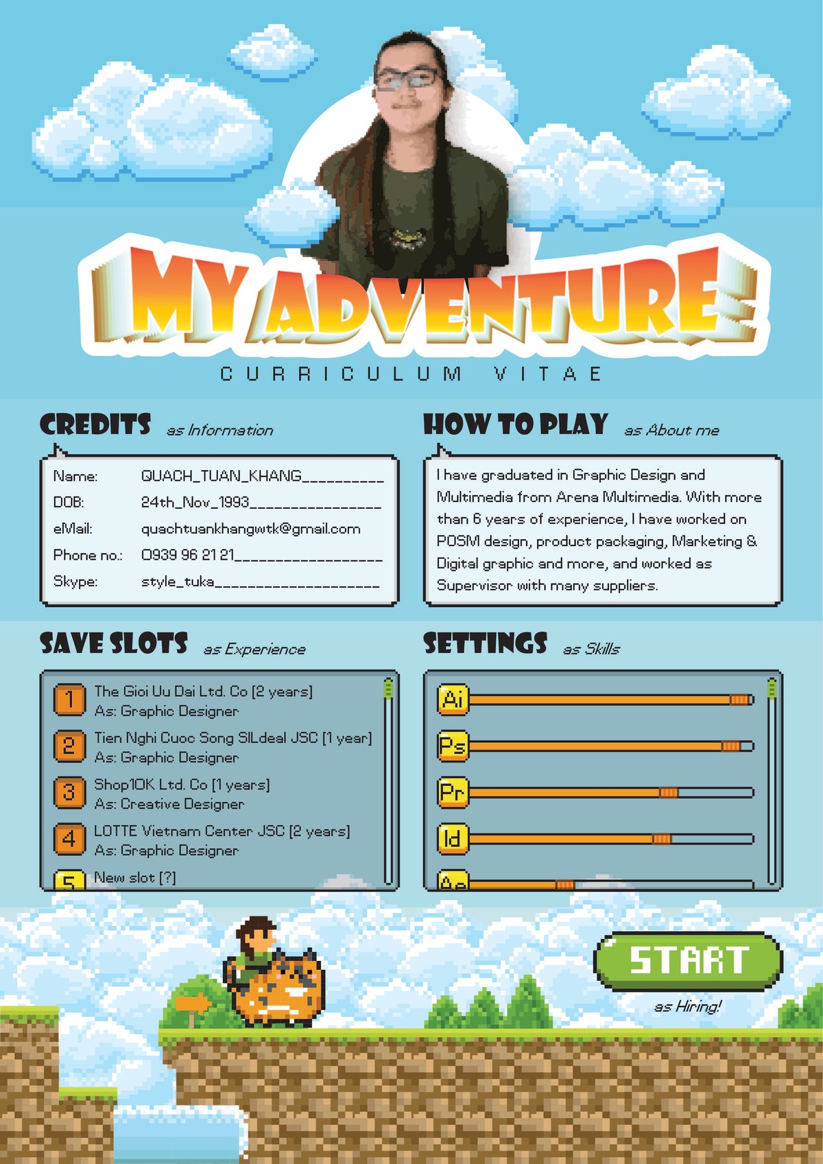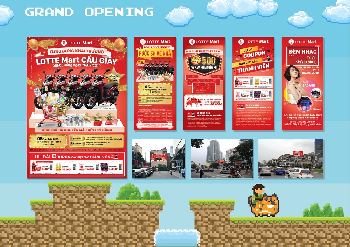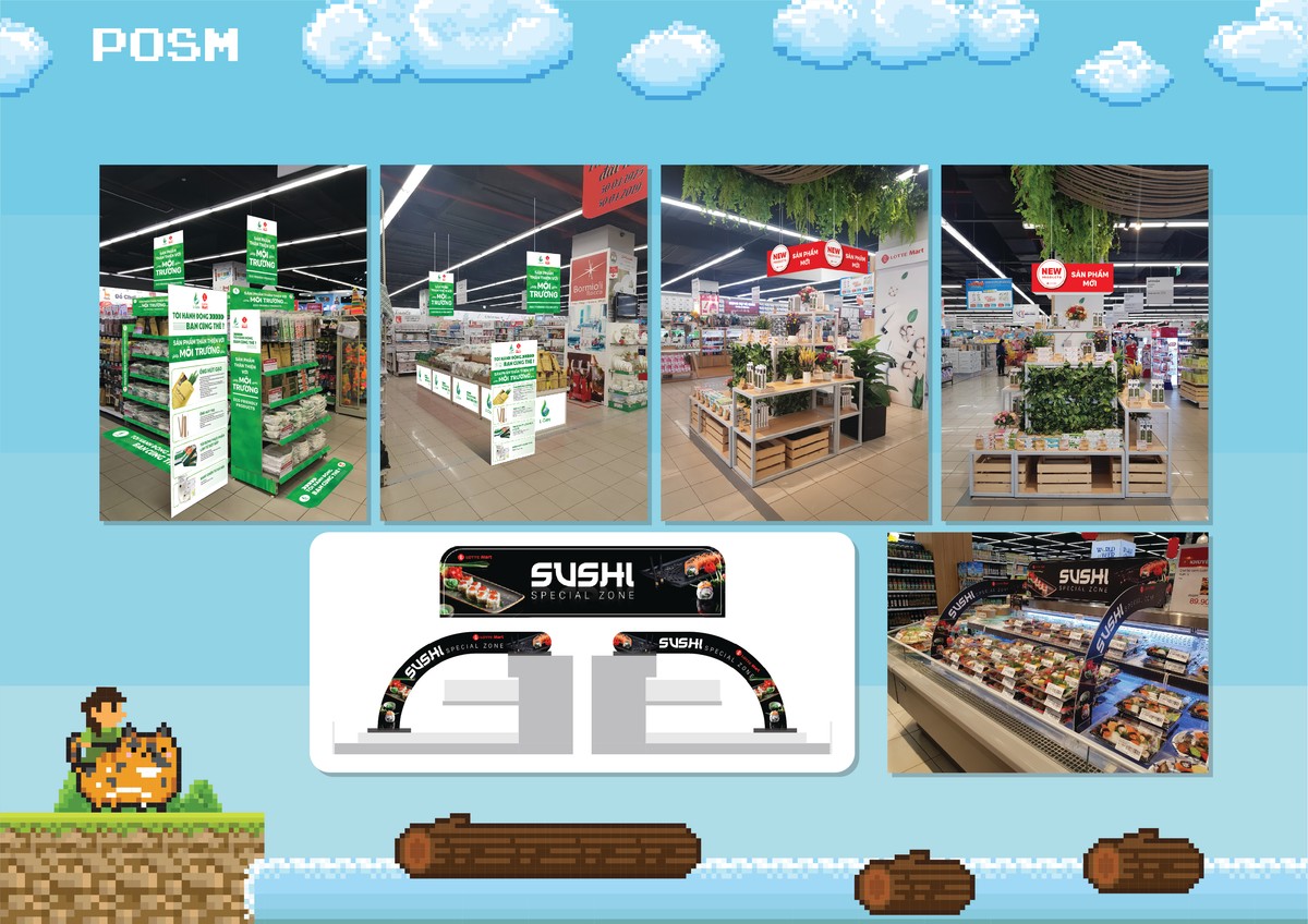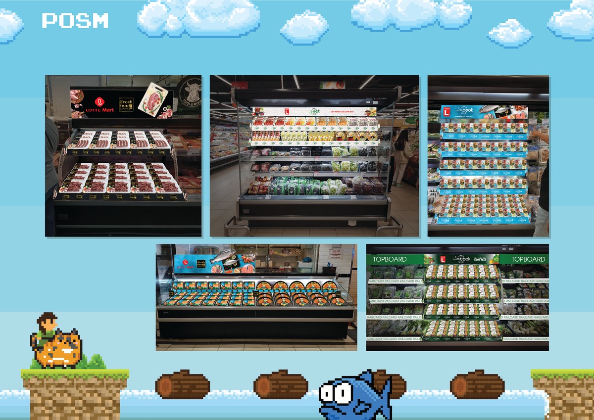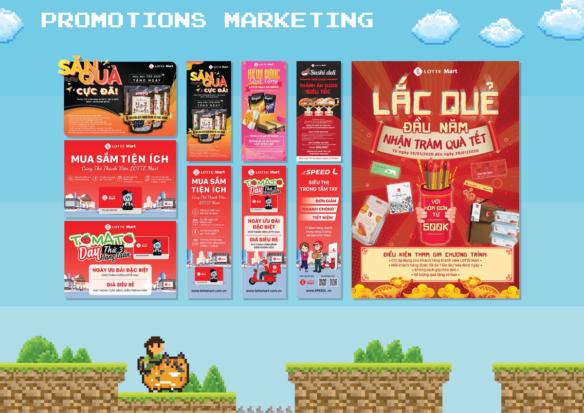 Thiết kế các hạng mục được giao trong team Marketing Design: Thiết kế nhiều hạng mục Marketing Promotion (flyer, brochure, poster, banner,...), ISP, POSM và decoration cho các outlets. Thiết kế Graphic cho các kênh truyền thông online của công ty (Website, Facebook, Youtube,... và trang thương mại điện tử www.lotte.vn). Thiết kế POSM và bao bì sản phẩm cho các sản phẩm nhãn hàng riêng của LOTTE Mart Việt Nam.