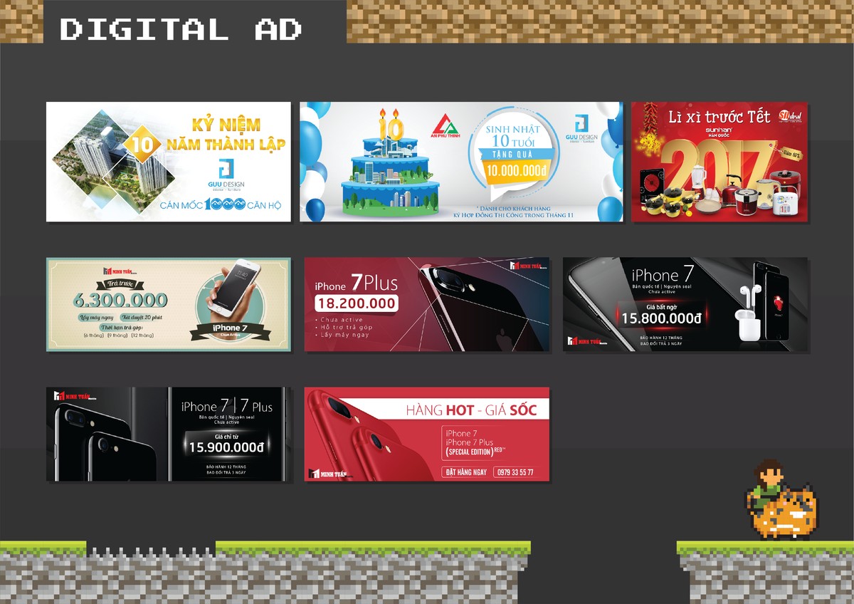 Thiết kế Graphic, Logo, Namecard, Thẻ thành viên cho các doanh nghiệp. Thiết kế và in thành phẩm standy, Bandroll, Backdrop, Tờ rơi, Brochure... cho các khách hàng và đối tác của công ty.