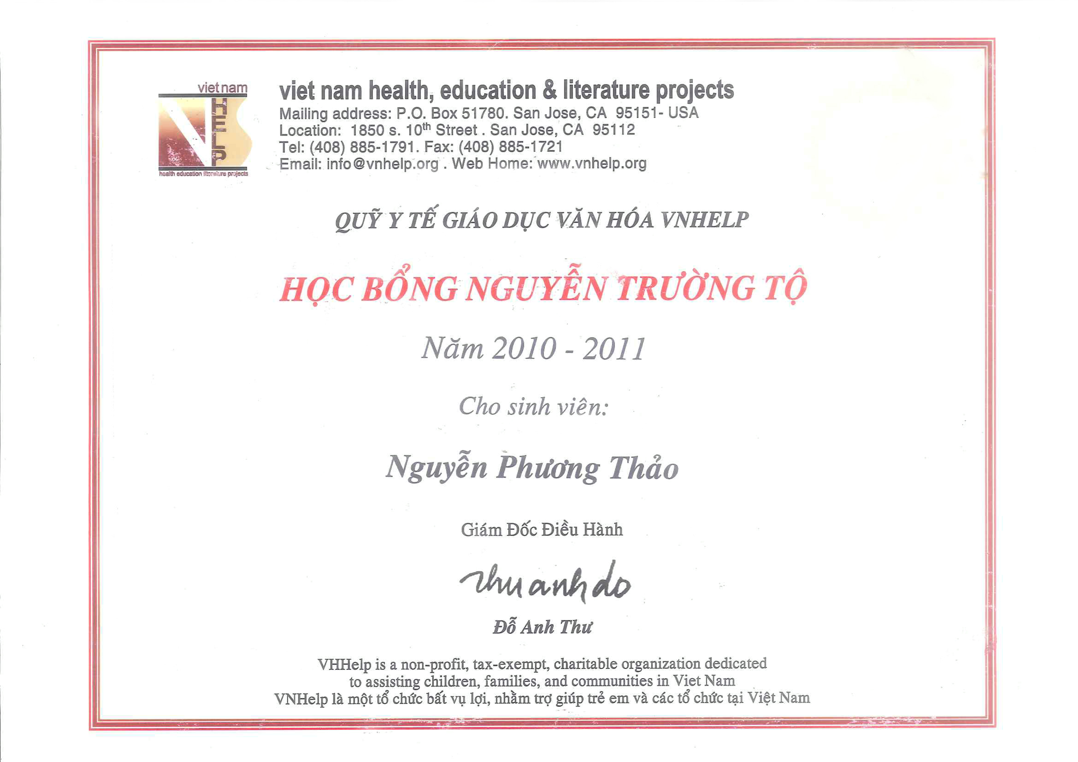 Nguyen Truong To Scholarship for Excellent Disadvantaged Students