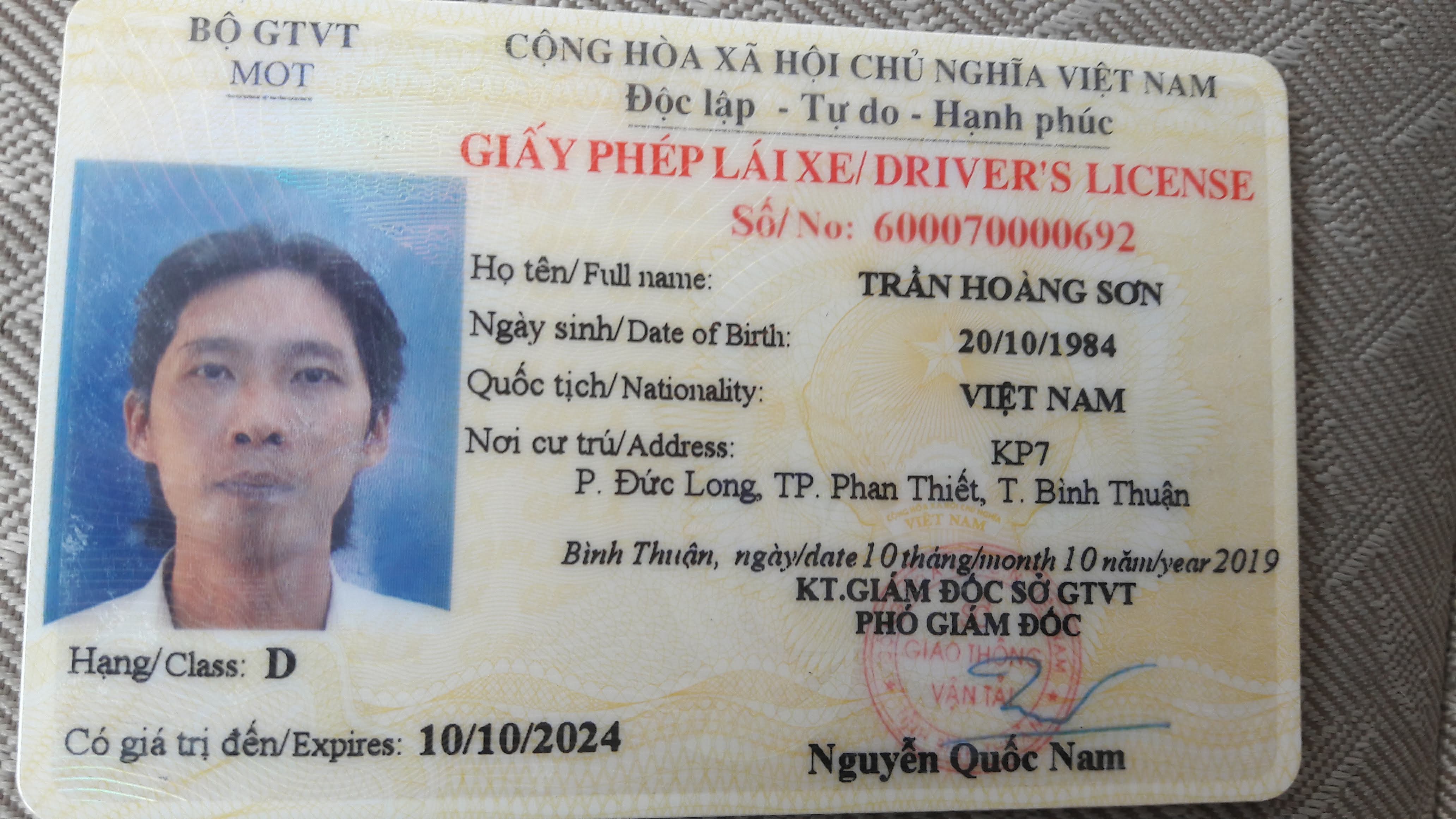 Nhân viên lái xe tại Cty cổ phần đầu tư và TM Phúc Long PNJ