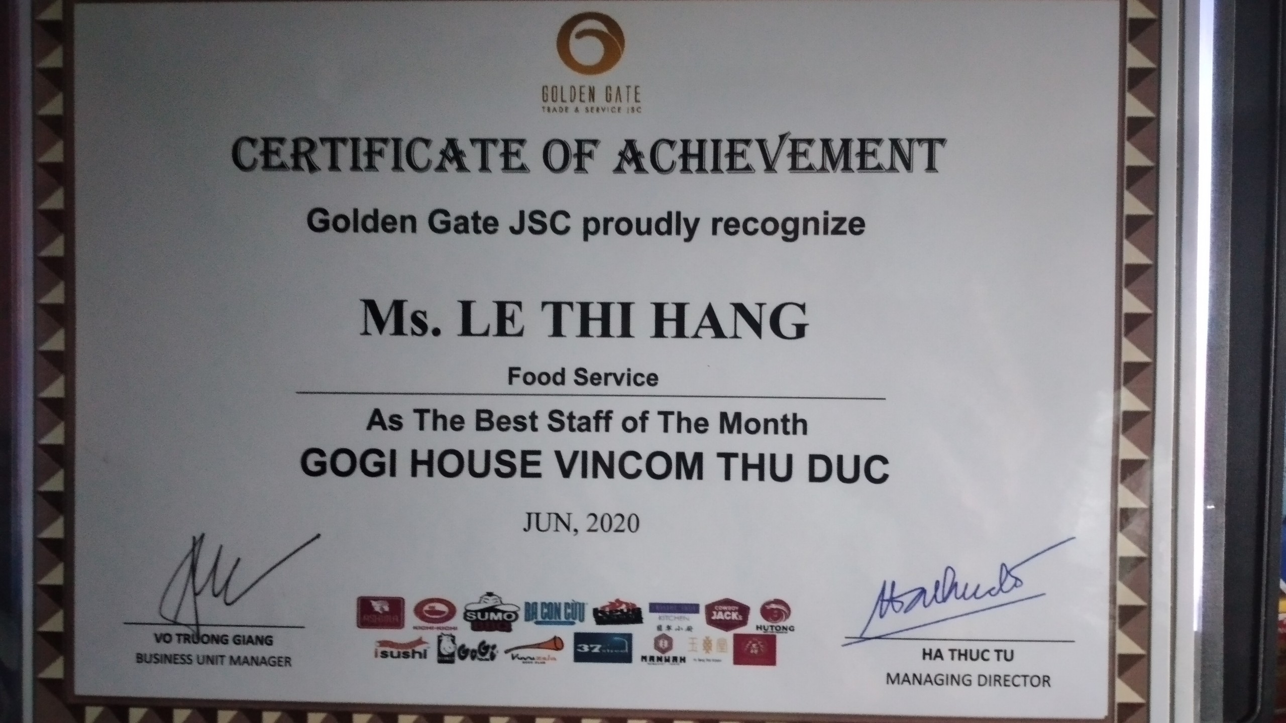 Nhân viên xuất sắc liên tiếp của tháng
