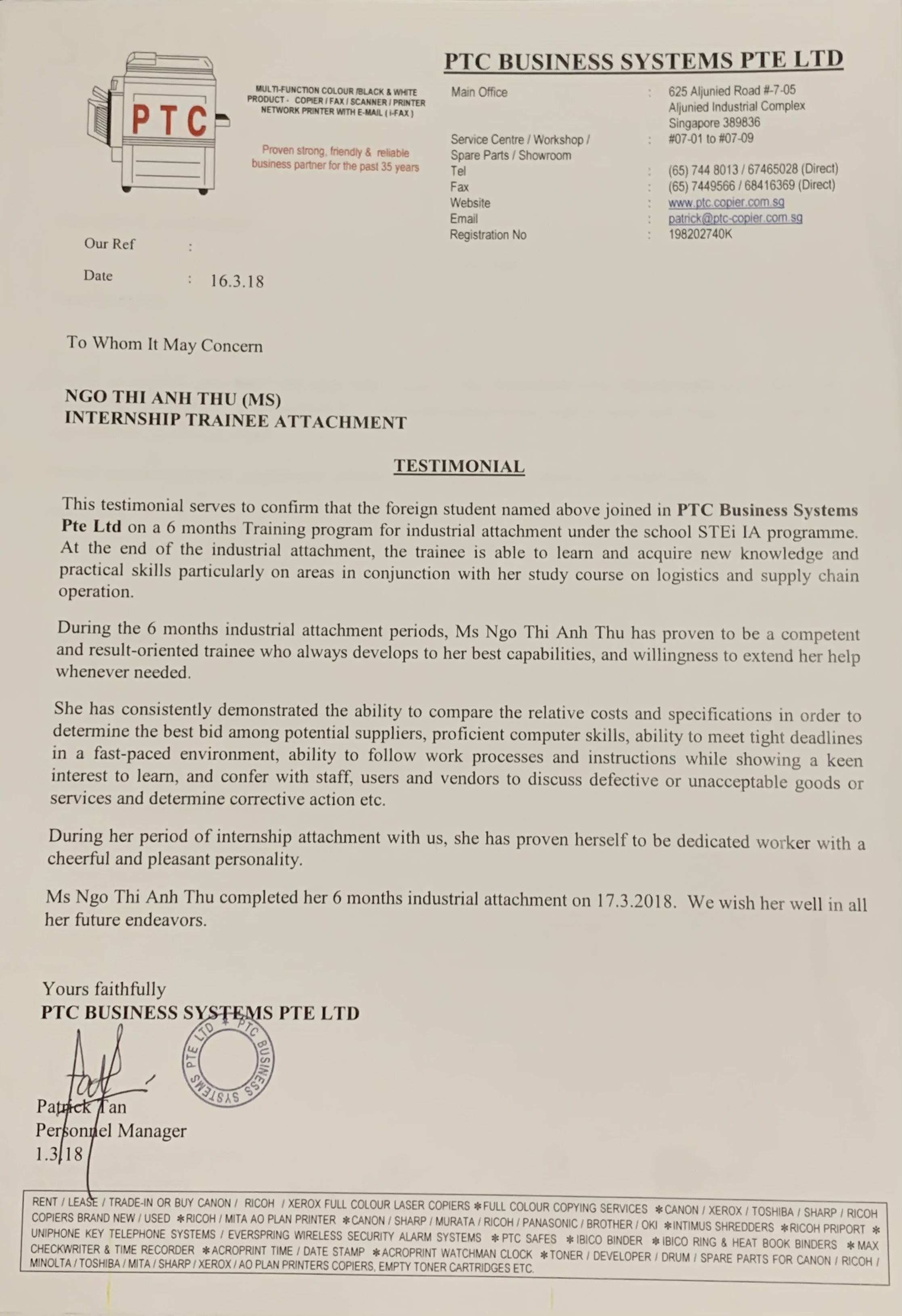 QUẢN TRỊ VIÊN CƠ SỞ NHẬP DỮ LIỆU VÀ CUNG ỨNG SẢN PHẨM tại PTC BUSINESS SYSTEM PTE, LTD
