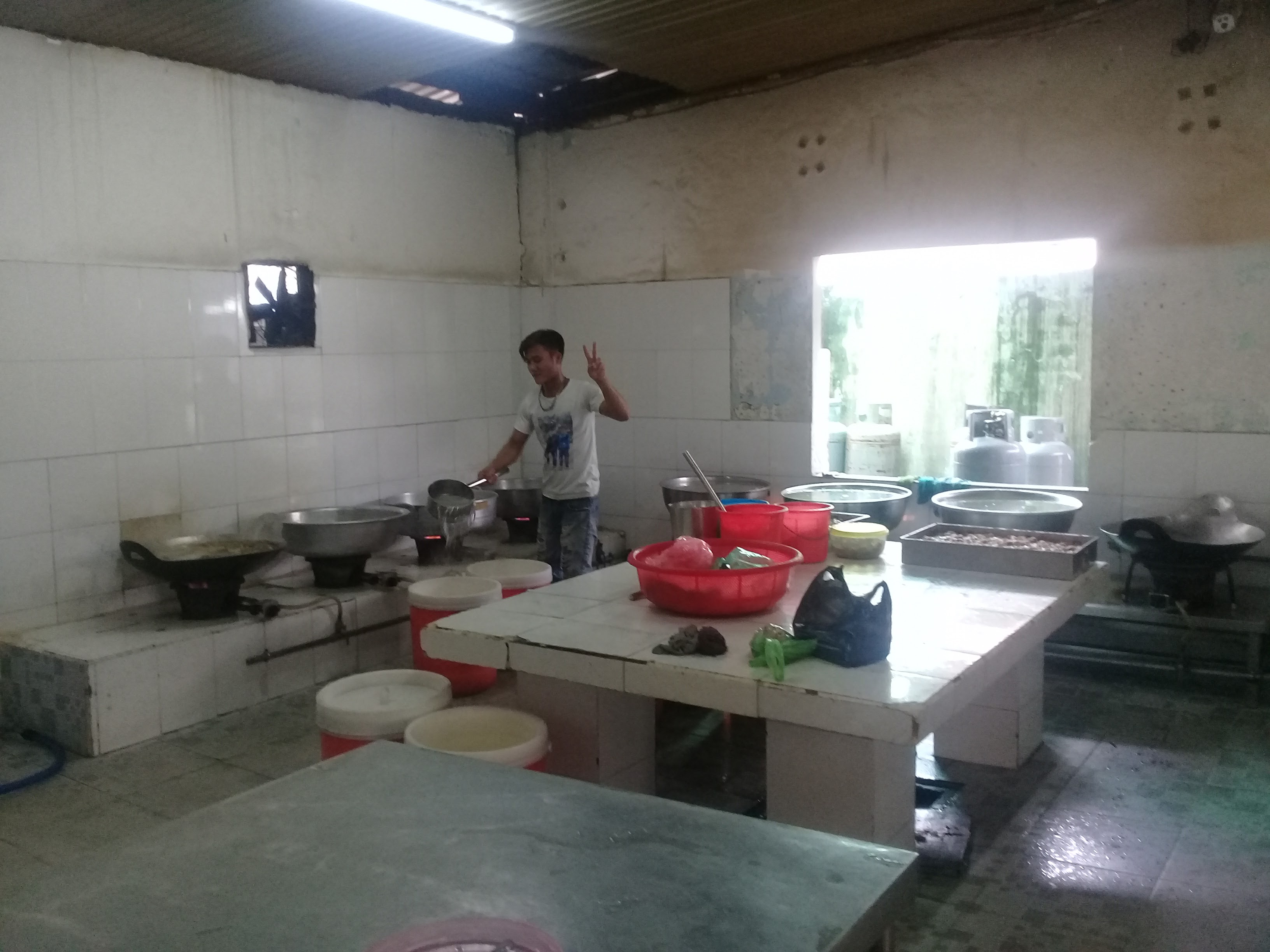 Mỗi trường sạch sẽ..làm trong bếp nấu ăn..chia món ăn