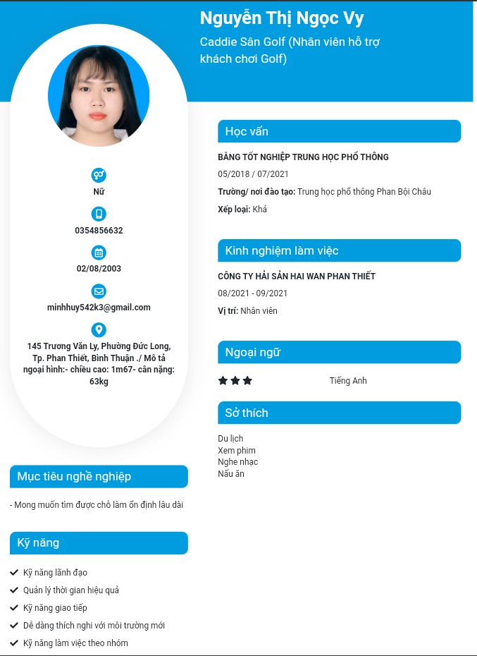 Hồ sơ ứng viên có số điện thoại, email và bao gồm 2 cv đính kèm.