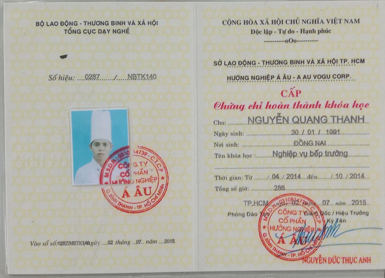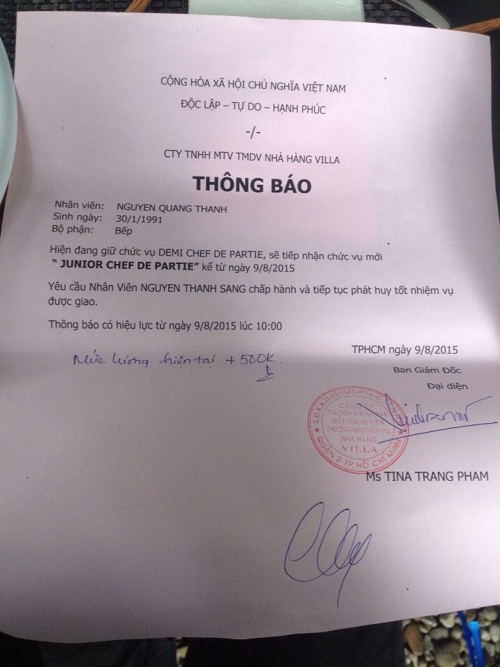 Được thăng chức từ bếp chính lên tổ trưởng tại nhà hàng Pháp.