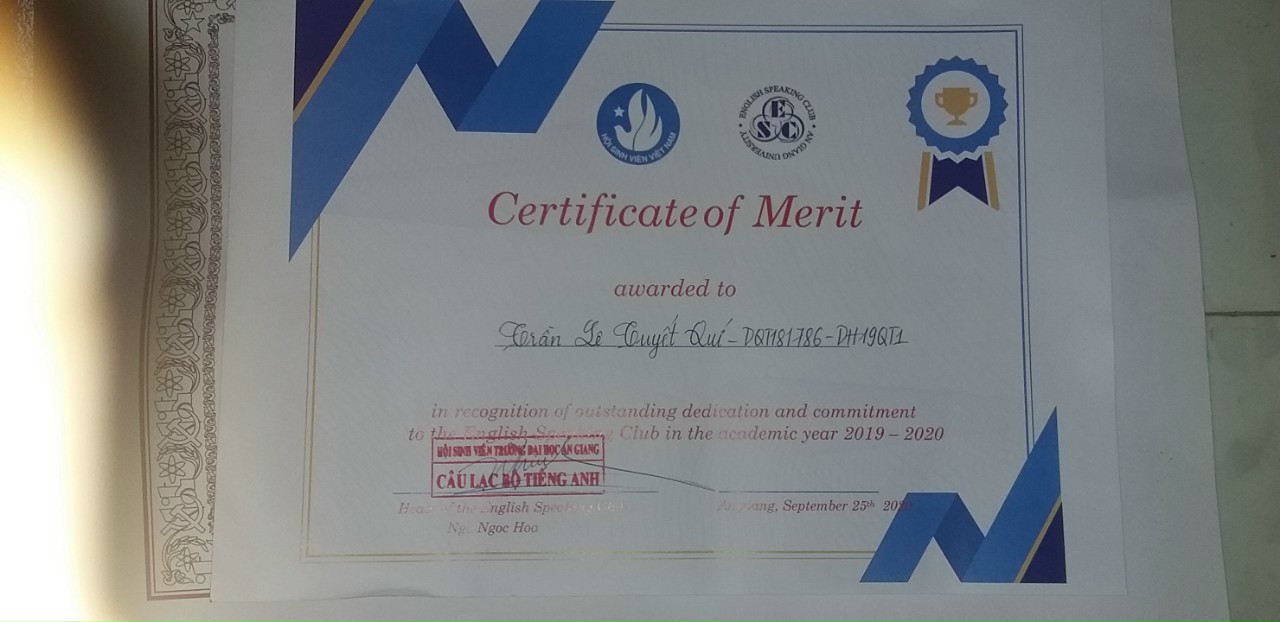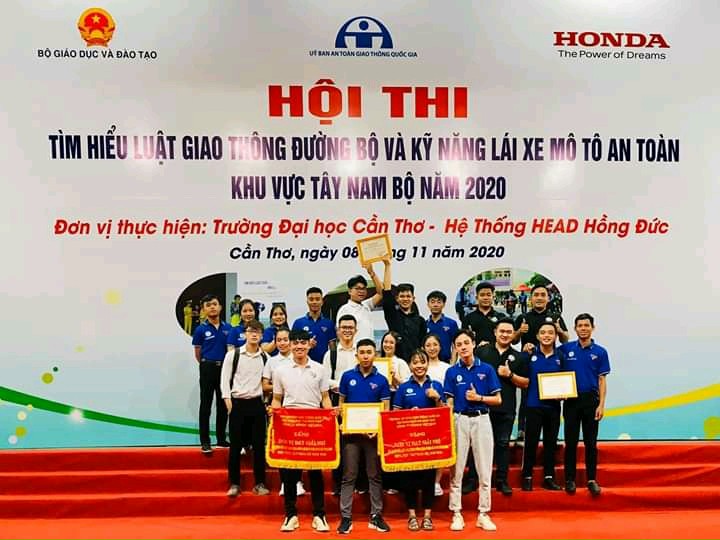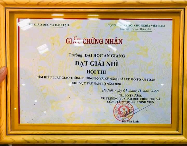 Là thành viên đội đại diện trường tham gia hội thi và đạt giải nhì HỘI THI TÌM HIỂU LUẬT GIAO THÔNG ĐƯỜNG BỘ VÀ KĨ NĂNG LÁI XE MÔ TÔ AN TOÀN KHU VỰC TÂY NAM BỘ NĂM 2020 ( Giải tập thể trường Đại học An Giang) dự thi ở Cần Thơ