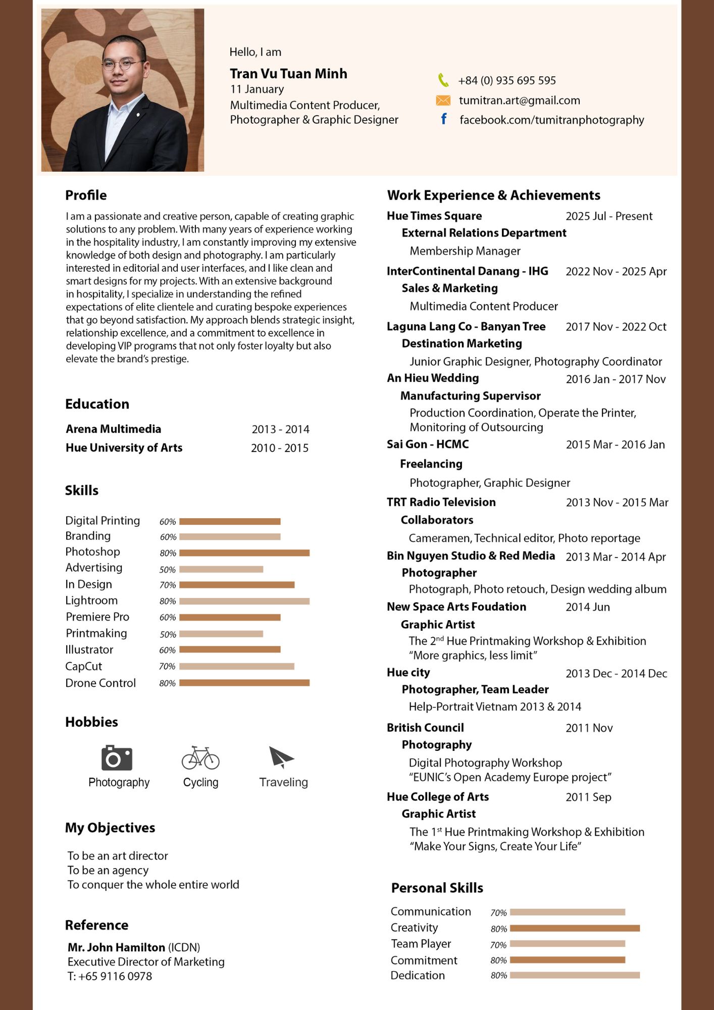 I am a passionate and creative person, capable of creating graphic solutions to any problem. With many years of experience working in the hospitality industry, I am constantly improving my extensive knowledge of both design and photography. I am particularly interested in editorial and user interfaces, and I like clean and smart designs for my projects. With an extensive background in hospitality, I specialize in understanding the refined expectations of elite clientele and curating bespoke experiences that go beyond satisfaction. My approach blends strategic insight, relationship excellence, and a commitment to excellence in developing VIP programs that not only foster loyalty but also elevate the brand’s prestige.