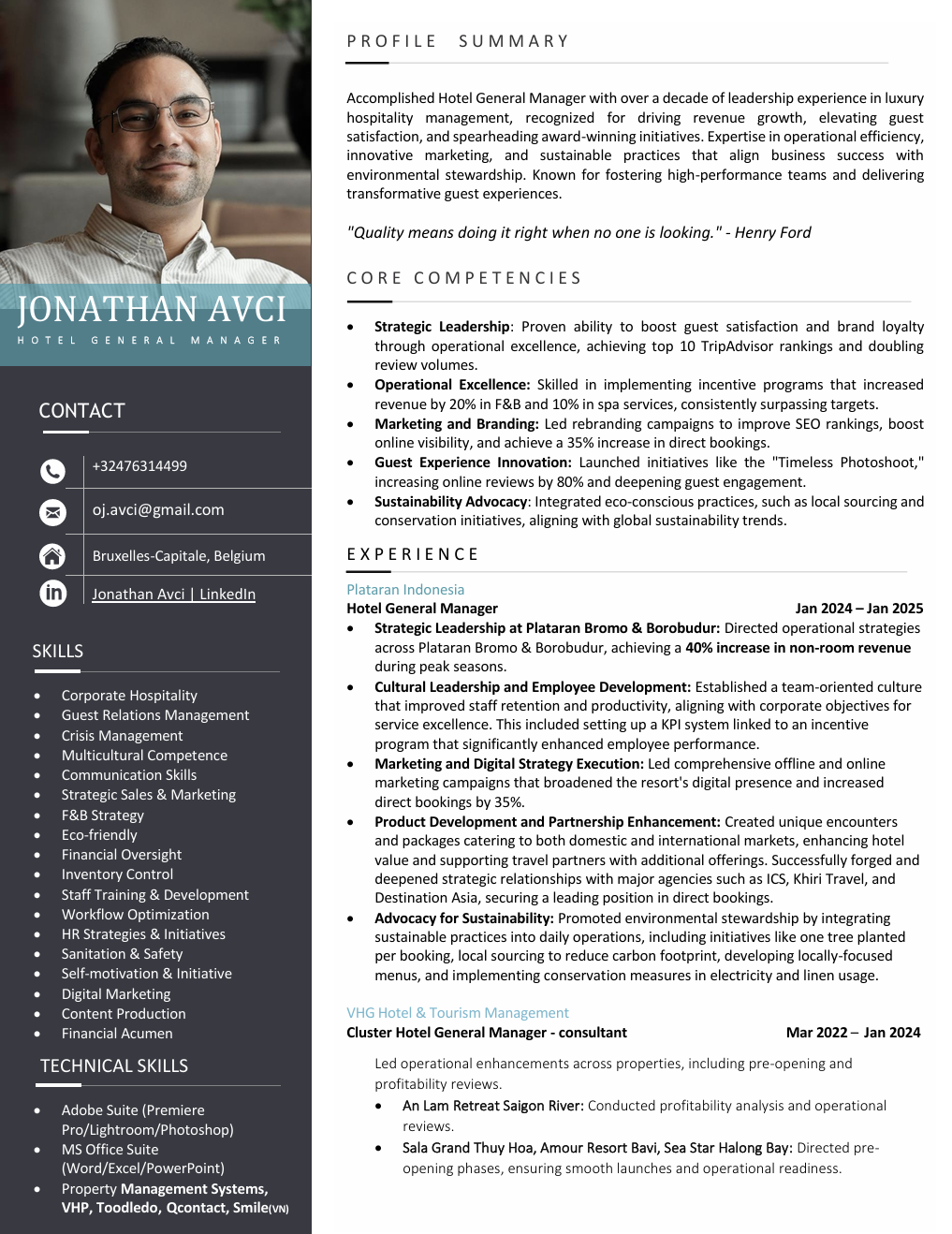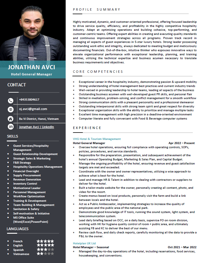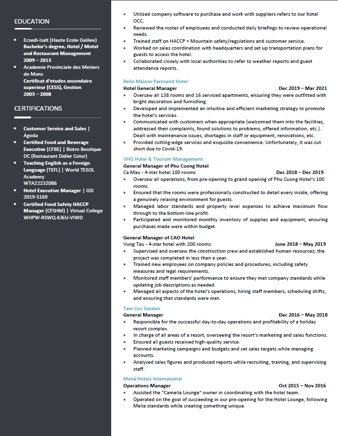 Over the past year, I've become a very polyvalent Hotel General Manager; in order to decrease labor costs and enhance hotel efficiency, my HOD and I had to wear multiple hats. I am confident that now I am holding all the cards to represent the owner's interest, lead employees to achieve great results and deliver what is best for the guest.