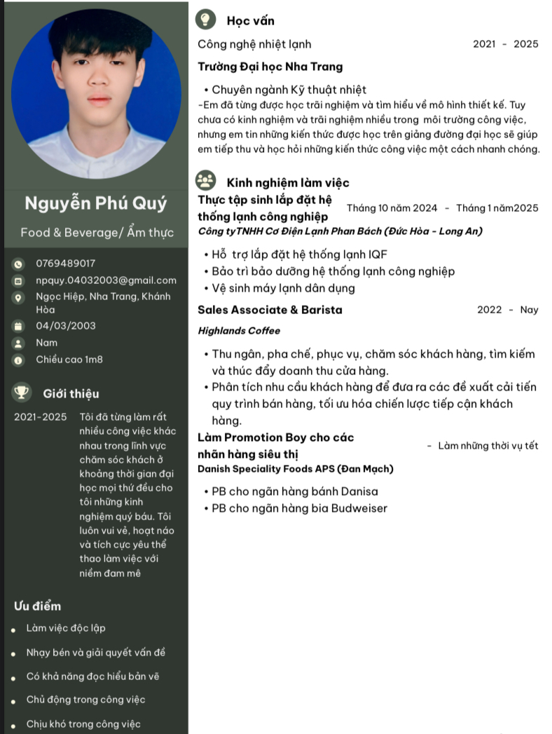 Hồ sơ ứng viên có số điện thoại, email và bao gồm 0 cv đính kèm.