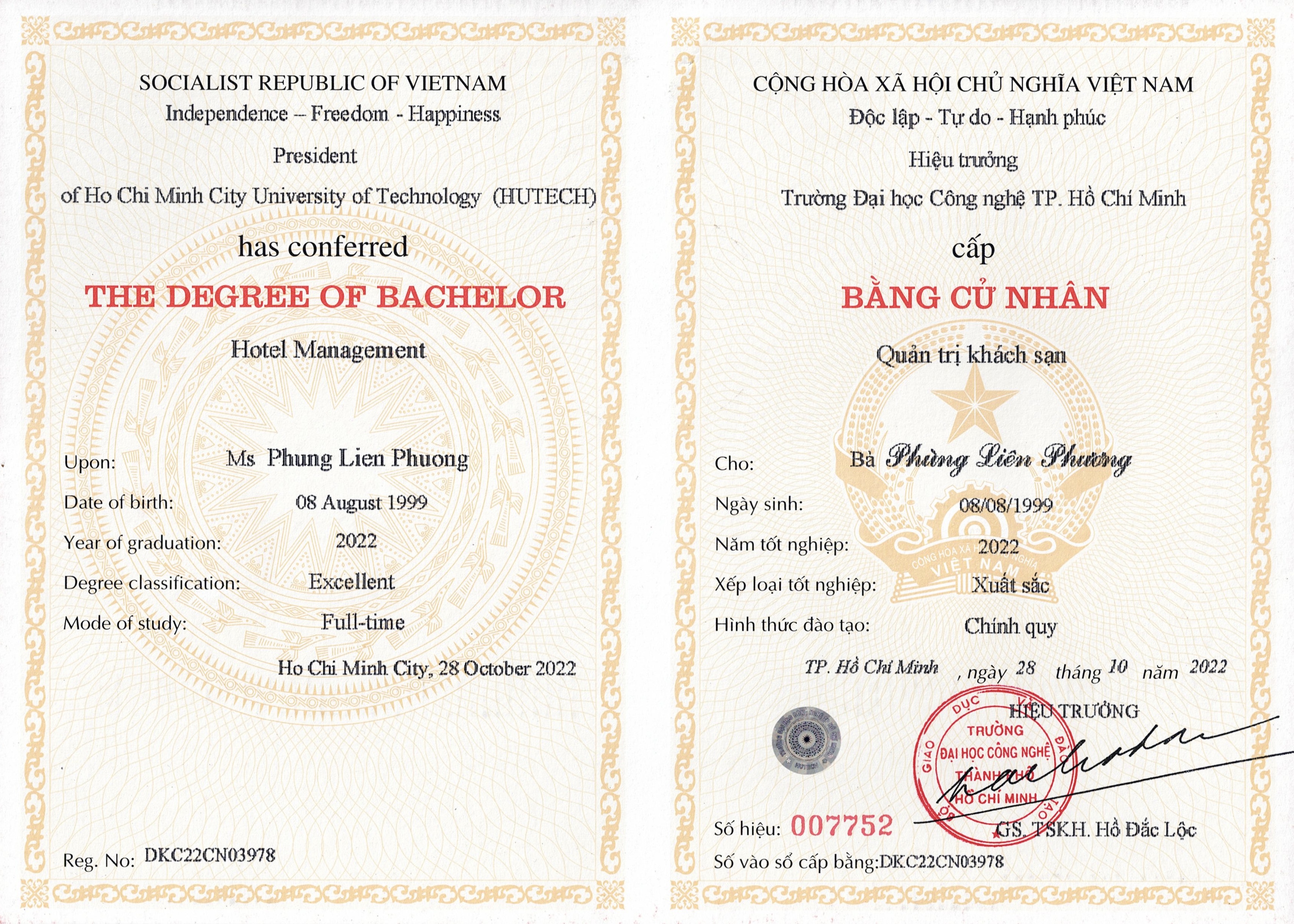 Total GPA: 3.61/4.0 Classification: Excellent Be trained under the full-time international program with English teaching. Received a Campaign medal for Excellent Student in freshman year.