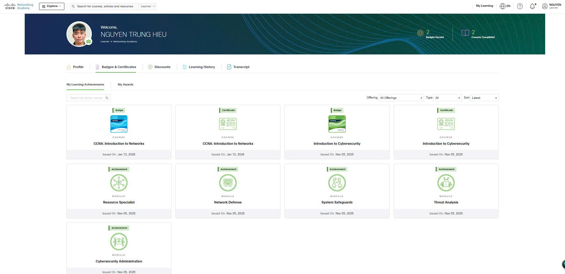 Cisco verifies the earner of this badge successfully completed the Introduction to Cybersecurity course. The holder of this student-level credential has introductory knowledge of cybersecurity, including the global implications of cyber threats on industries, and why cybersecurity is a growing profession. They understand vulnerabilities and threat detection and defense. They also have insight into opportunities available with pursuing cybersecurity certifications.