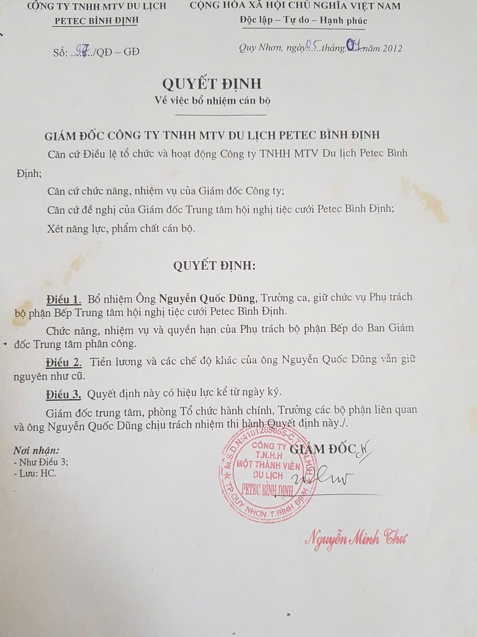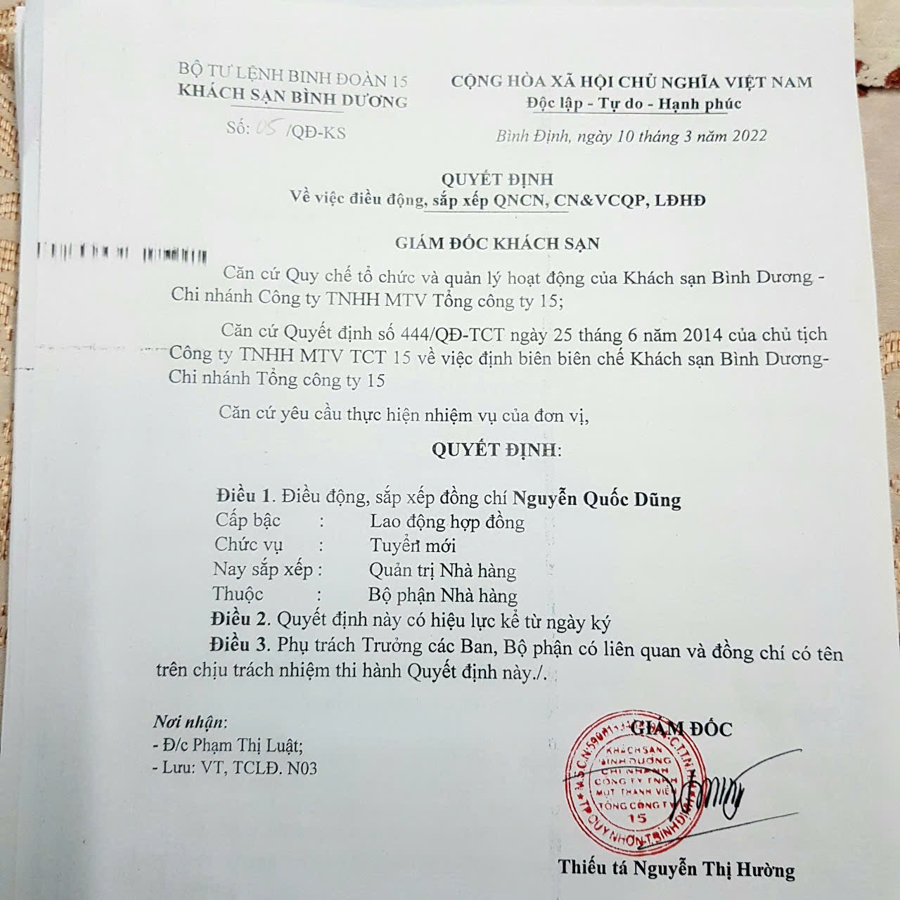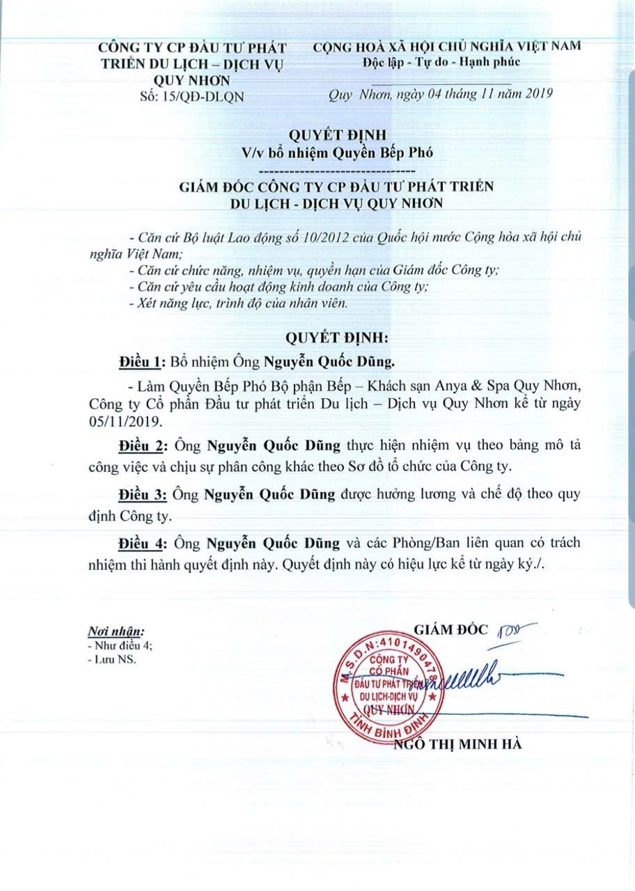 nguyễn quốc dũng - Quản lý khách sạn