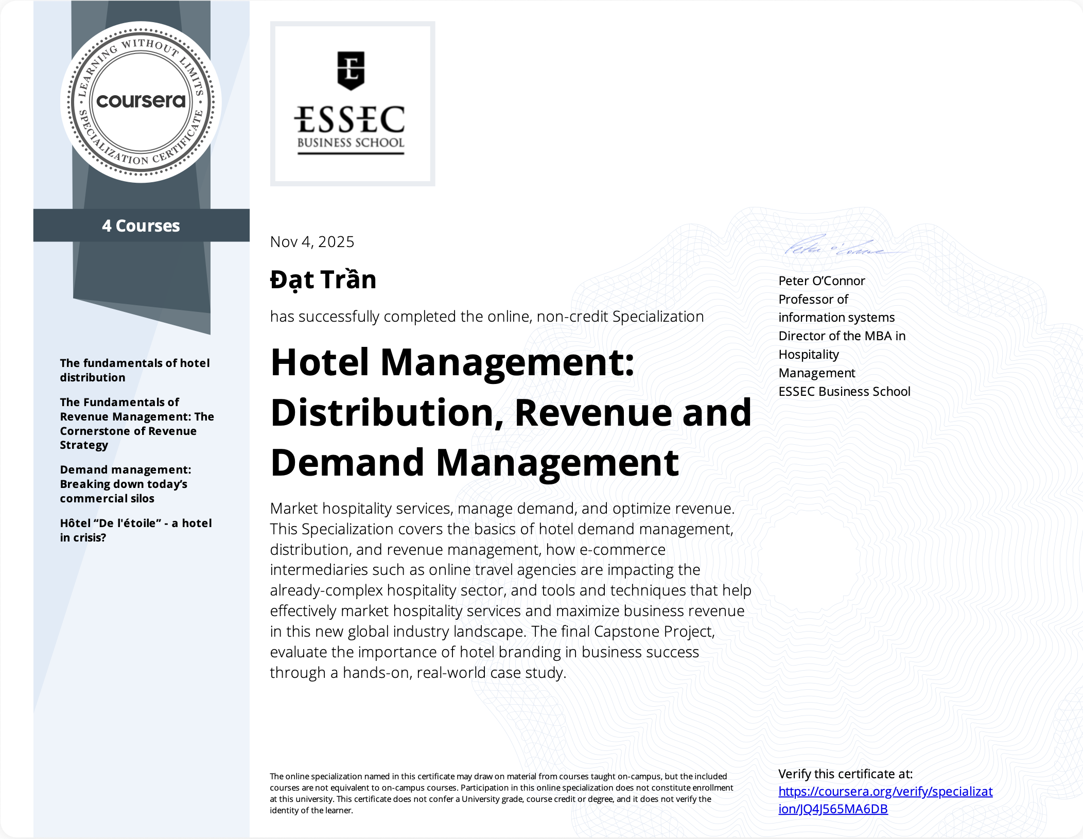 Responsible for building the strategy, optimizing distribution channels, and leading all e-commerce activities to drive sustainable revenue growth across all digital platforms. ▪️ Planned and executed the annual e-commerce business plan, achieving an average online revenue growth of 15-20% Year-over-Year. ▪️ Optimized performance on key OTA channels (Booking.com, Agoda, Expedia, etc.) through dynamic pricing strategies, promotion management, and content optimization, resulting in a 10% increase in ADR, 10% in Occupancy, and 21% in RevPAR YoY. ▪️ Analyzed market trends, customer behavior, and competitor activities to identify growth opportunities and make timely strategic adjustments. ▪️ Grew the direct booking channel via the website by 10%, reducing dependency on OTAs and saving on commission costs. ▪️ Led a project to improve the user experience (UX/UI) and optimize the Booking Engine, increasing the website's conversion rate by 15%. ▪️ Managed and analyzed online guest reviews, contributing to an improved overall review score and enhancing the hotel's ranking on key platforms. ▪️ Leveraged analytics and data visualization tools to build dashboards, providing deep insights on key metrics to support management's strategic decision-making. Proficient In: - All extranets on OTA platforms (Booking.com, Agoda, Expedia, Traveloka, MakeMyTrip, Hotelbeds, Trip.com, DOTW, MG Bedbank, Tiket, etc.) and GDS. - PMS: Newway - Channel Manager (CM): SiteMinder, STAAH - Review Management: ReviewMinder - SEO/SEM, Website Content Management System - OTA Insight, BI & Analytics: Lighthouse, Google Analytics, Tableau, Looker Studio, SQL, Google Trends - Productivity & AI: MS Office Advance, Google Workspace, Gemini, ChatGPT, Canva