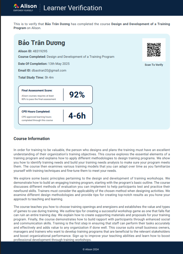 - Coordinated logistics for employee training sessions including preparation of training materials, attendance tracking, and venue arrangements - Assisted in organizing orientation programs and service standards training for newly hired employees - Supported the Training Manager in preparing learning materials and documentation for internal development programs - Assisted the Training Manager in interviewing 30+ internship candidates and supported onboarding procedures for selected candidates - Coordinated onboarding documentation and administrative processes for new interns - Maintained training attendance records and supported HR documentation related to employee development activities