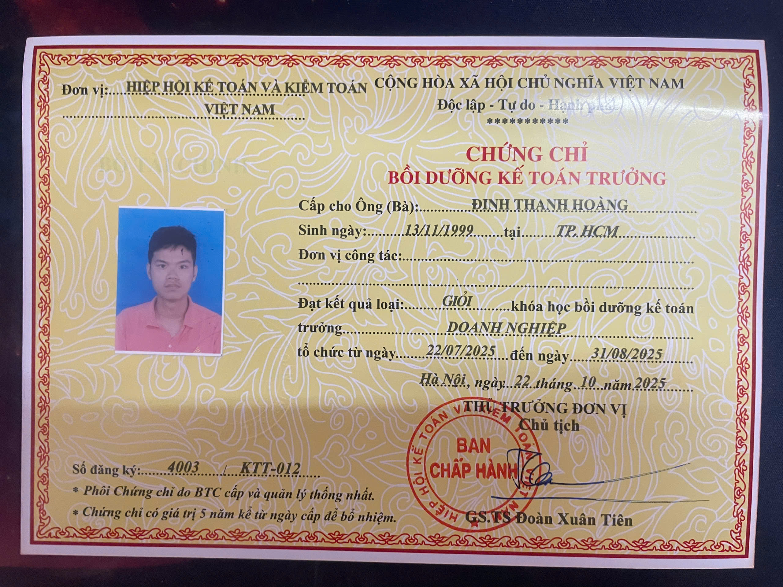 Chief Accountant Certificate - Khác - 2026 - 2026