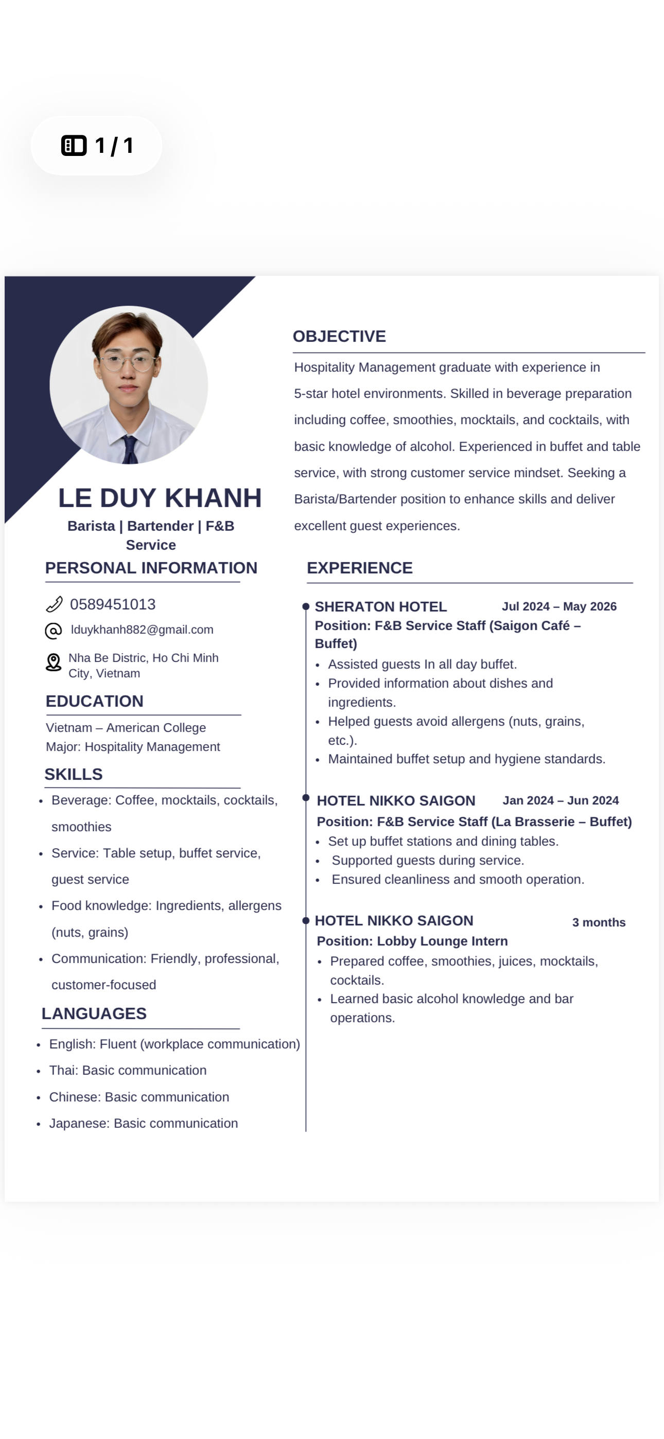 Hồ sơ ứng viên có số điện thoại, email và bao gồm 0 cv đính kèm.