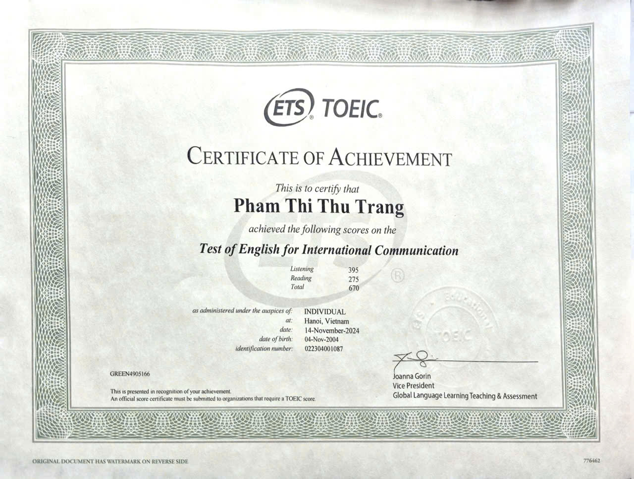 Tiếng Anh (Khá), Tiếng Trung (Trung bình)