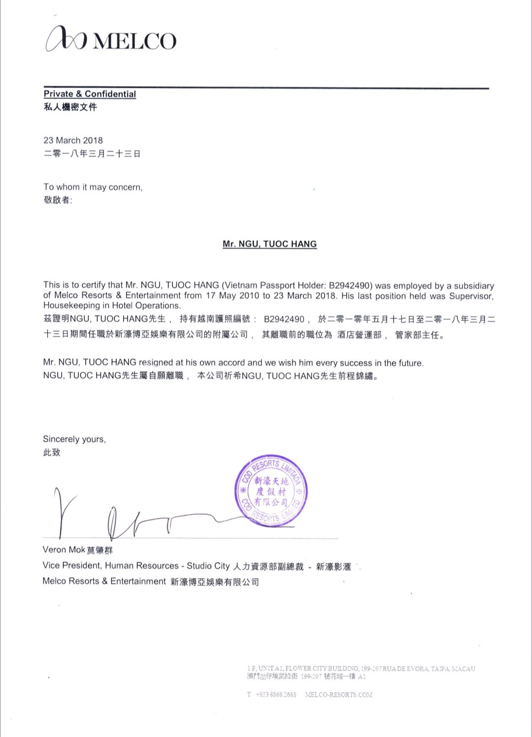 Quản Lý Giám Sát Buồng Phòng tại Studio City Macau
