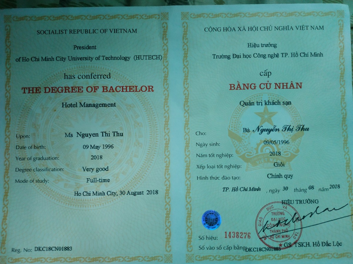 Thủ khoa ngành Quản trị Du lịch-Nhà hàng -Khách sạn