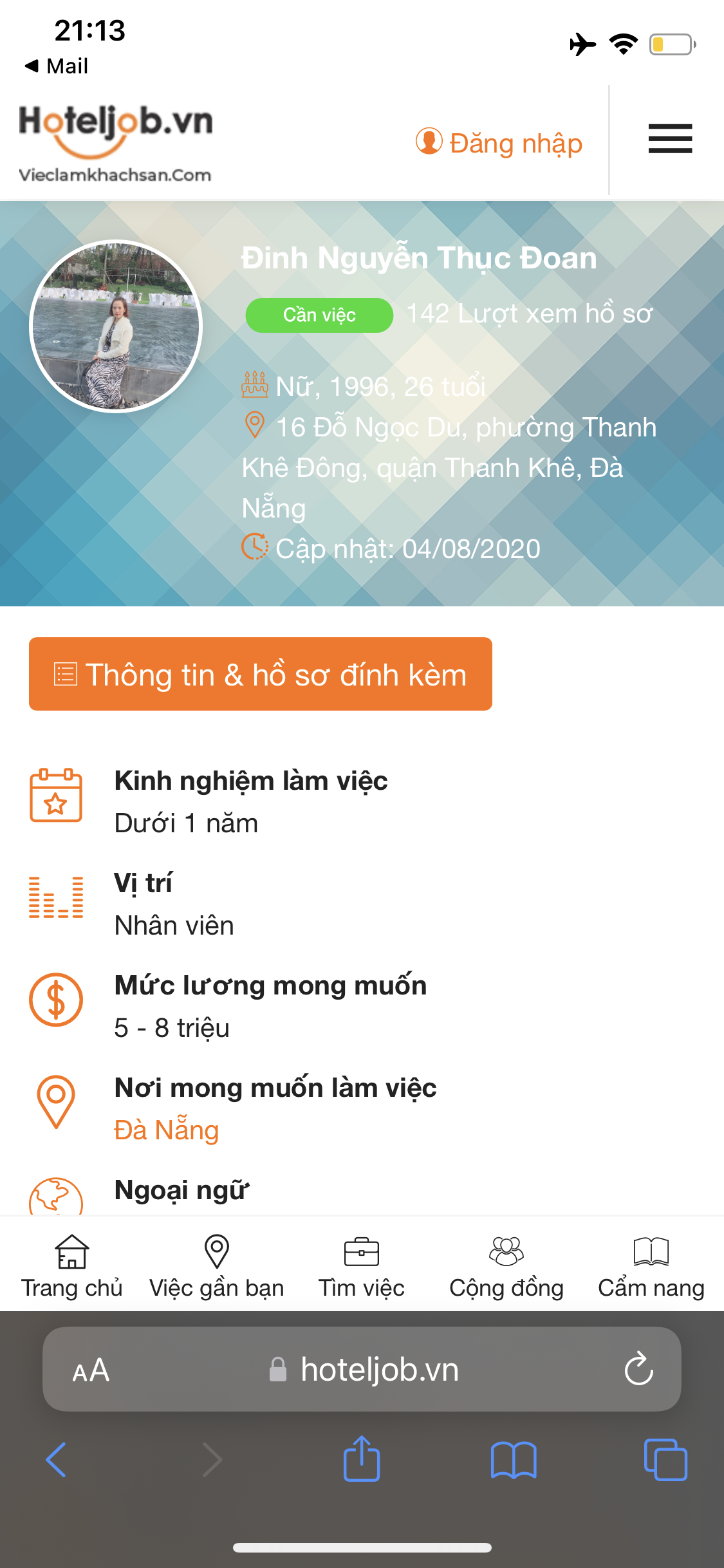 giúp tôi tìm lại hồ sơ trên Hoteljob.vn