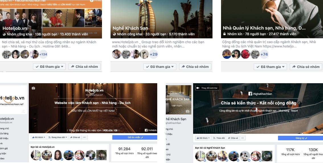 | 7. Được đăng tuyển trên các fanpage của hoteljob.vn | ||||