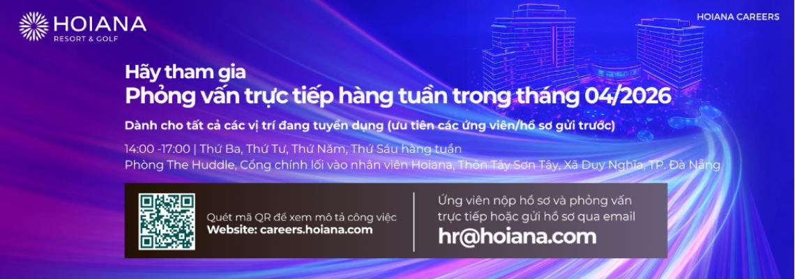 - Good and competitive HR benefits (Additional insurance, staff housing, daily shuttle bus Danang - Hoiana, duty meal, ...)