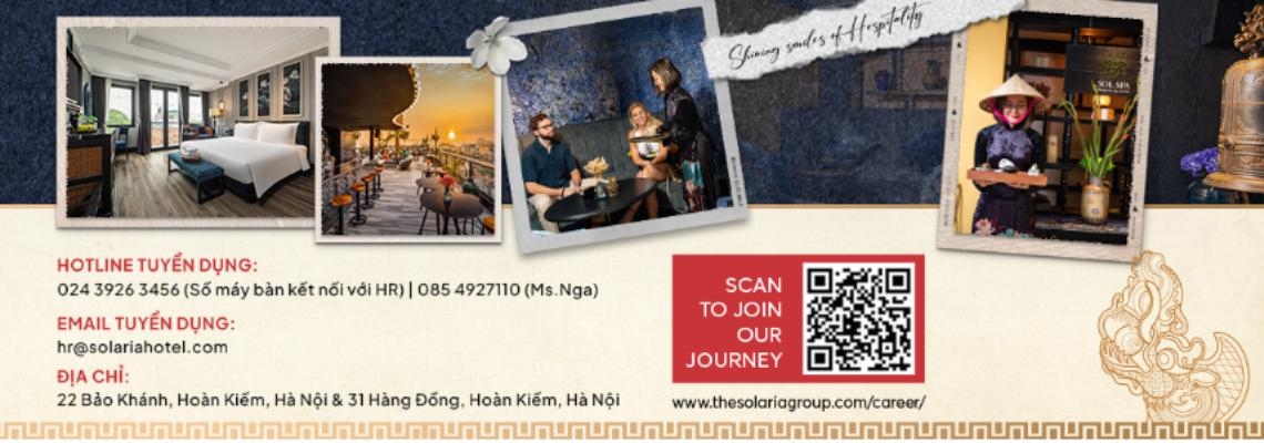 Solaria Boutique Hotel, featuring 50 brand-new modern rooms, indochine style, each detail has been passionately chosen and each room deserves a visit. Our customers mostly are foreign, with more than 90% speaking English, coming from Europe countries, USA, Australian... We are looking for suitable companions, which sharing the same core value with us, Understanding - Responsibility - Inspiration. Together, we will create a land of smiling hospitality for all of our customers. Join us and contribute our best together.