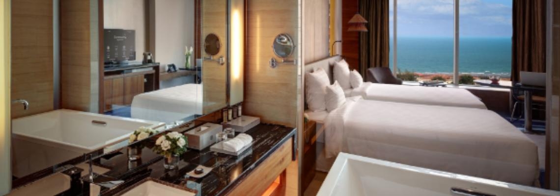 Khách sạn Pullman Vũng Tàu có 356 phòng với thiết kế đương đại mang hơi thở của nhịp sống thành phố biển sáng tạo và sống động, trong khi vẫn mang đến cho du khách trải nghiệm “bleisure” – sự cân bằng hoàn hảo giữa công việc và nghỉ ngơi. Hệ thống Trung tâm hội nghị, hội thảo với diện tích hơn 2321 mét vuông, gồm 2 phòng đại tiệc cùng 4 phòng họp với trang thiết bị mới nhất, có sức chứa đến 1200 khách. Du khách cũng có thể gặp gỡ, giải trí hay thư giãn khi thưởng thức các nét ẩm thực riêng biệt và hấp dẫn tại Nhà hàng Riviera với thực đơn tự chọn đẳng cấp quốc tế, Corniche Ultra Lounge với các món ăn nhẹ Tapas hay trải nghiệm các thức uống thú vị tại các Quầy Bar Lobby hay Quầy Bar tại Khu vực Bể bơi. Phòng tập Fit Lounge mở cửa 24/7 và hồ bơi ngoài trời tràn ngập ánh sáng cùng nhiều tiện nghi mang các nét riêng biệt của Pullman như Welcomer, đệm giường Signature Pullman, Connectivity Lounge , tiêu chí Co-Meeting chắc chắn sẽ làm hài lòng các du khách.