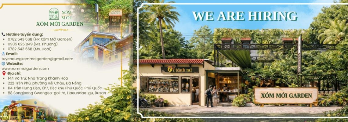 Khu phức hợp nhà hàng hơn 1500m2, với 5 thương hiệu nổi tiếng, thỏa mãn mọi khẩu vị của thực khách: - Cơm Việt Nam ‘Tiệc Nhà’ - BBQ ‘Ỉn Ơi’ - Hải sản ‘Làng Biển’ - Cà phê ‘Laphin’ - Phở ‘Mừng’ - Ồ! Bánh Mì Hiện tại Công ty đang có 4 chi nhánh: Xóm Mới Garden Nha Trang - 144 Võ Trứ, Phường Nha Trang, Khánh Hòa Xóm Mới Garden Đà Nẵng - 222 Trần Phú, phường Hải Châu, Đà Nẵng Xóm Mới Garden Phú Quốc - 114 Trần Hưng Đạo, KP7, Đặc khu Phú Quốc, An Giang TARA SPA - 75 Võ Trứ, Tân Lập, Nha Trang, Khánh Hòa